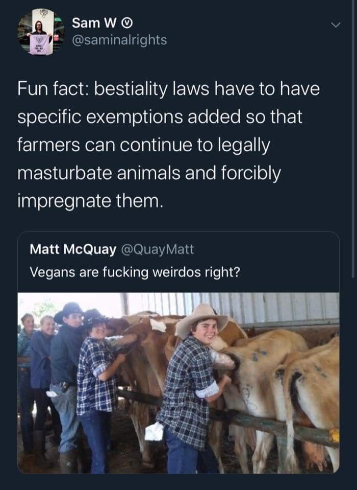 nutbutter@discuss.tchncs.de to vegan@lemmy.worldEnglish · 13 hours ago"Being vegan is unnatural"discuss.tchncs.deimagemessage-square0fedilinkarrow-up11 cross-posted to: lemmyshitpost@lemmy.world