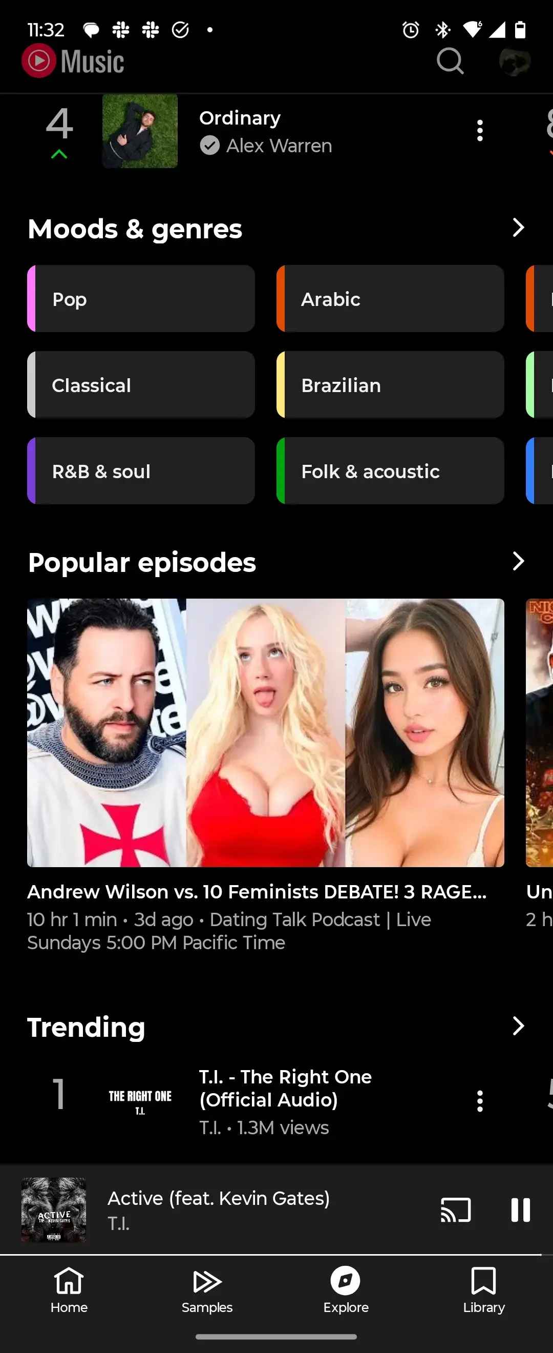 It’s YouTube music, which is showing popular “podcasts” on its explore page. Must be just because it’s popular because nothing in my algo on either youtube or YouTube music would suggest this shit.