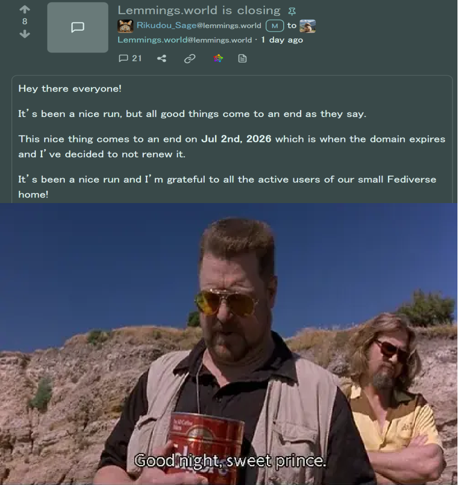 The US government running its own Lemmy instance would not be worse than any established instance suddenly disappearing.