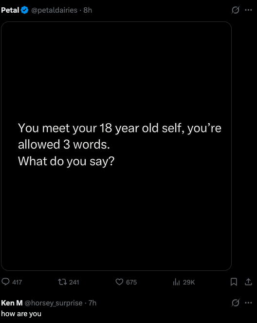 Literally talked with him in an ultra realistic dream last night. Told him to “hang in there” and then I showed him some cool tech he has to look forward to.