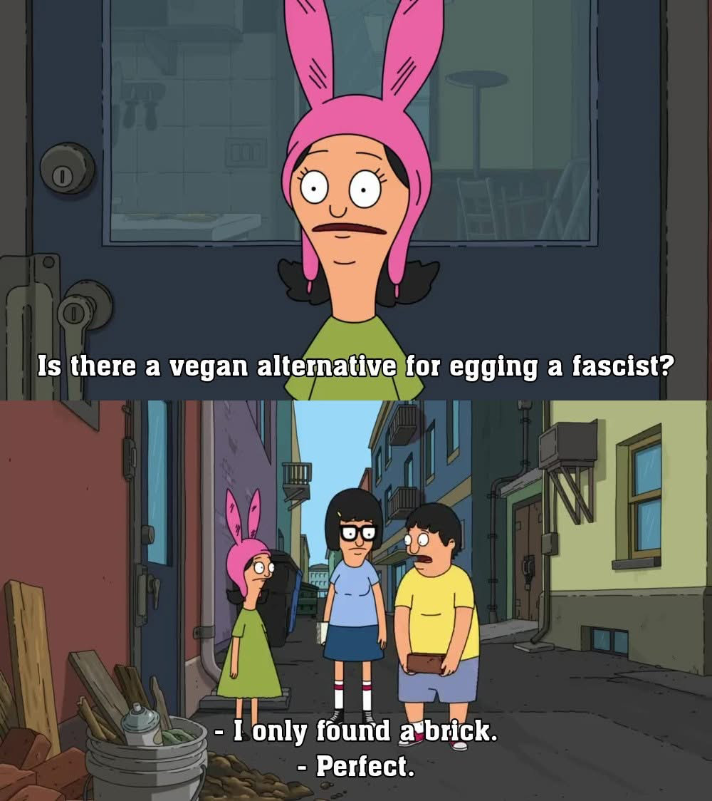 Brick also comes with the benefit of a much higher chance of permanently removing the fascist and their harm.