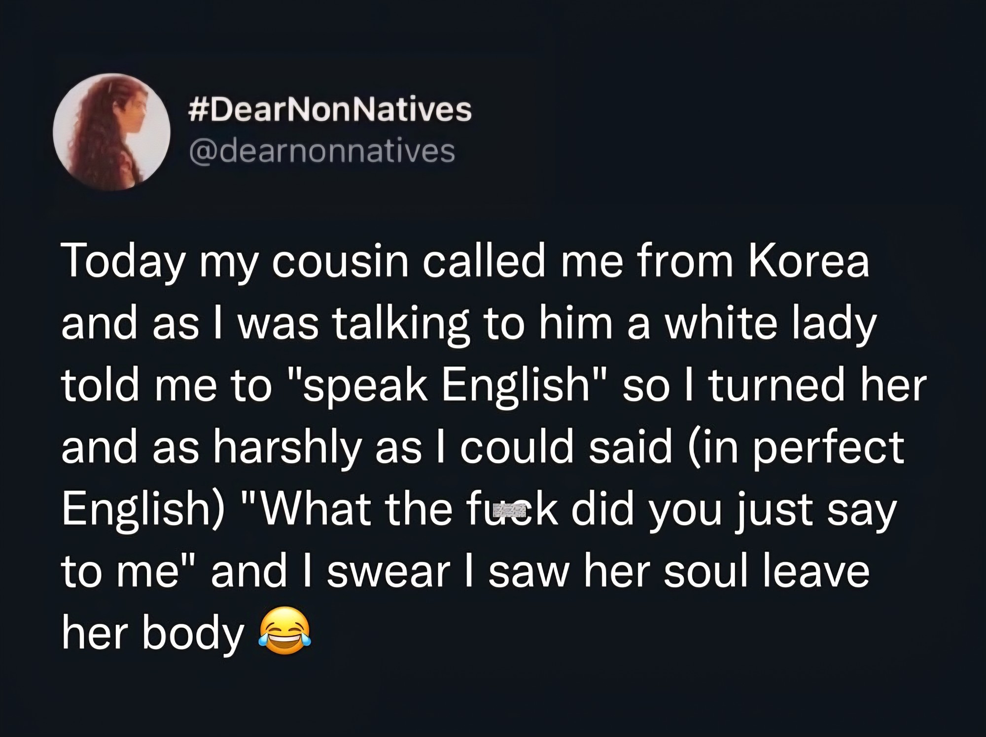 I’m in an LGBTQIA+ oriented community in Discord and have been there for the better part of 3+ months. EVEN IN THERE where we’re all pretty tolerant and cool with each others identities, there’s a couple of people like this. Sometimes in voice chat it gets a bit heated with the whole “Illegal immigrants thing”. One of the member’s main arguments or points of sentiment is the “they can’t even speak OUR language” and I’m always like “buddy, please… there are so many reasons why x person can’t speak y language; that doesn’t mean anything”.