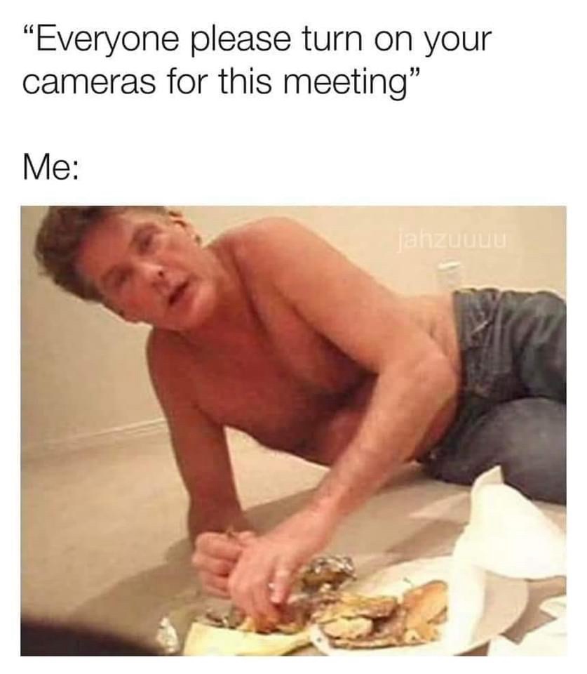 Had a meeting with a new guy on my team and the PM asked him to get on camera. When he does you can see he’s sitting in bed shirtless even though he tried to keep it to just his face. I was like WTF I later found out he’s a paraplegic and I felt bad for him.