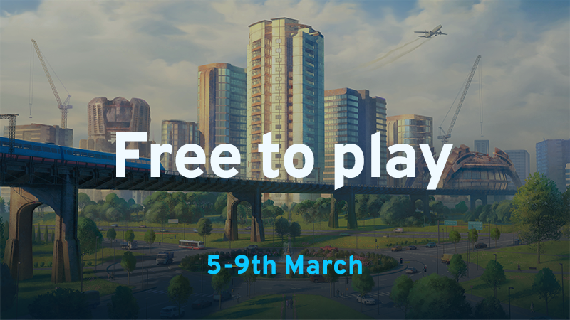 Cities: Skylines is Free to Play! For a limited time, Cities: Skylines is free to play for the whole weekend! Whether you’ve been watching from the sidelines or meant to revisit your grandest metropolis, this is the perfect moment to step into the mayor’s office. Design road networks with flair, shape districts with personality, and watch your citizens go about their daily routines. Every decision matters.