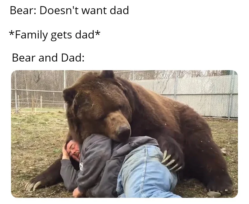 arrow-up11imageDaddy Bearmander.xyzDav09@mander.xyz to Lemmy Shitpost@lemmy.worldEnglish · edit-27 days agomessage-square0fedilink