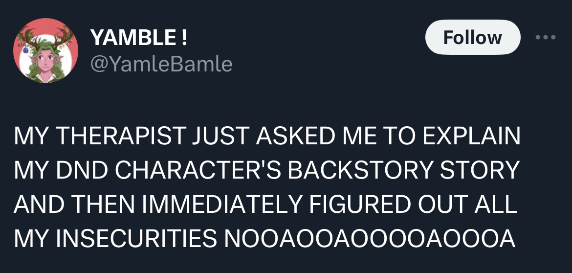 Mandarbmax@lemmy.world to RPGMemes @ttrpg.network · 1 year agoThe mortifying ordeal of being knownlemmy.worldimagemessage-square0fedilinkarrow-up11