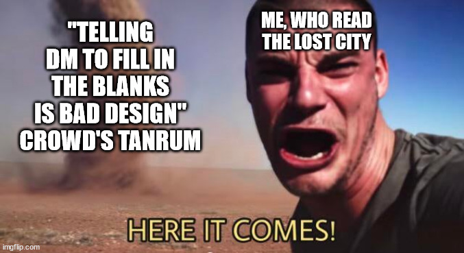 I personally get pissed when I ask for advice how much backstory is ok for game starting at level 3 or 5 and people still tell me to be dumb nobody who doesn’t know how to hold a sword, even though that makes no fucking sense.