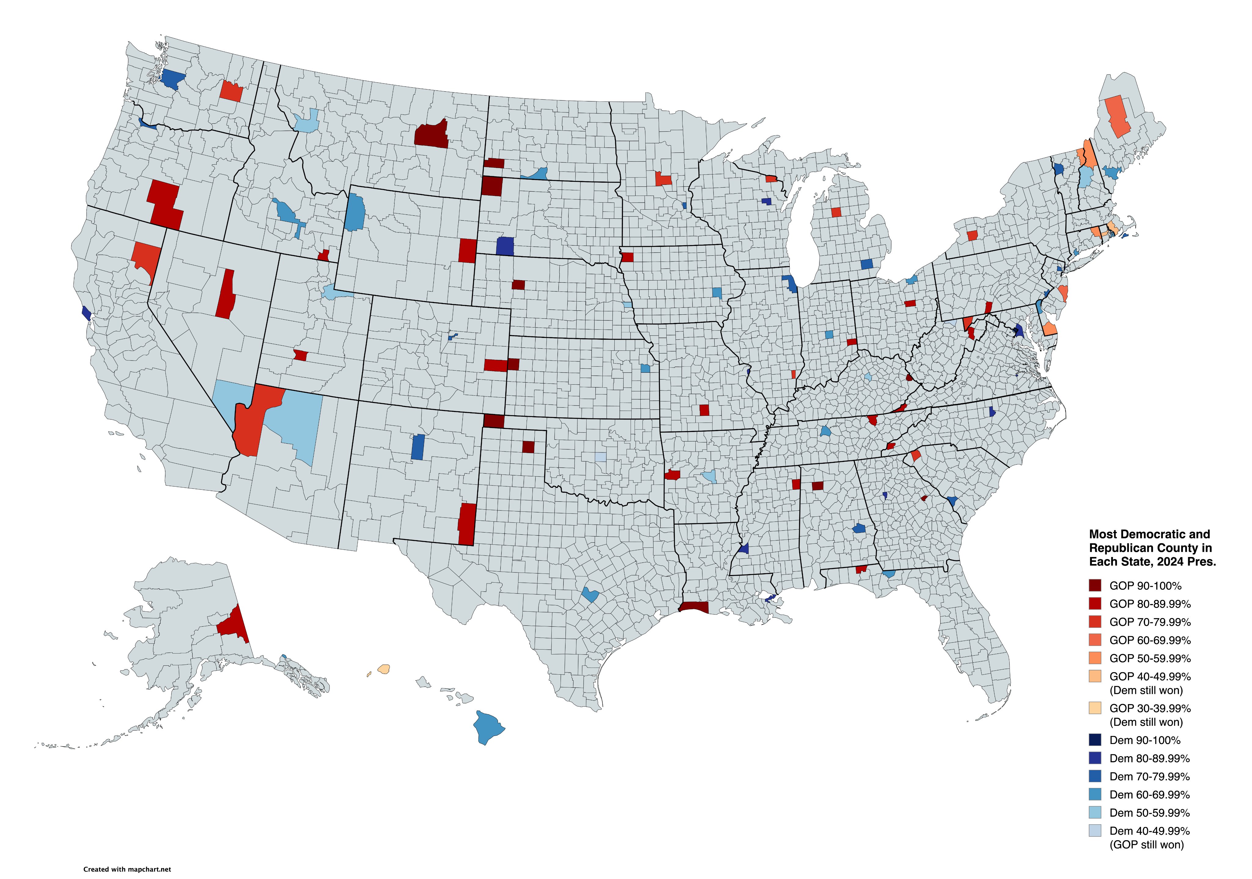 arrow-up139imageHere's the most partisan county in every state based on the share of the vote Trump and Harris received.lemmy.worldValasian@lemmy.world to Data is Beautiful@mander.xyzEnglish · 3 days agomessage-square15fedilink