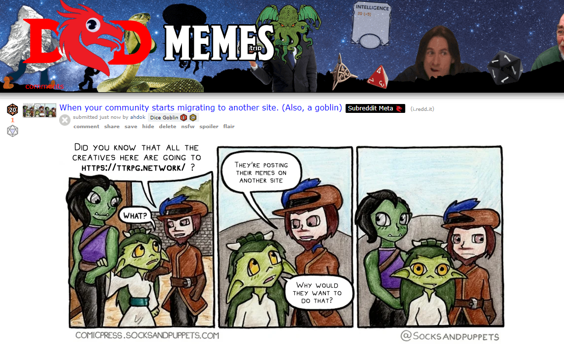 I discussed whether or not this was acceptable content with the moderators and creators of this community before I started, and they’re supportive of artists posting their RPG comics here, it’s a part of the community. The community description even reflects this.