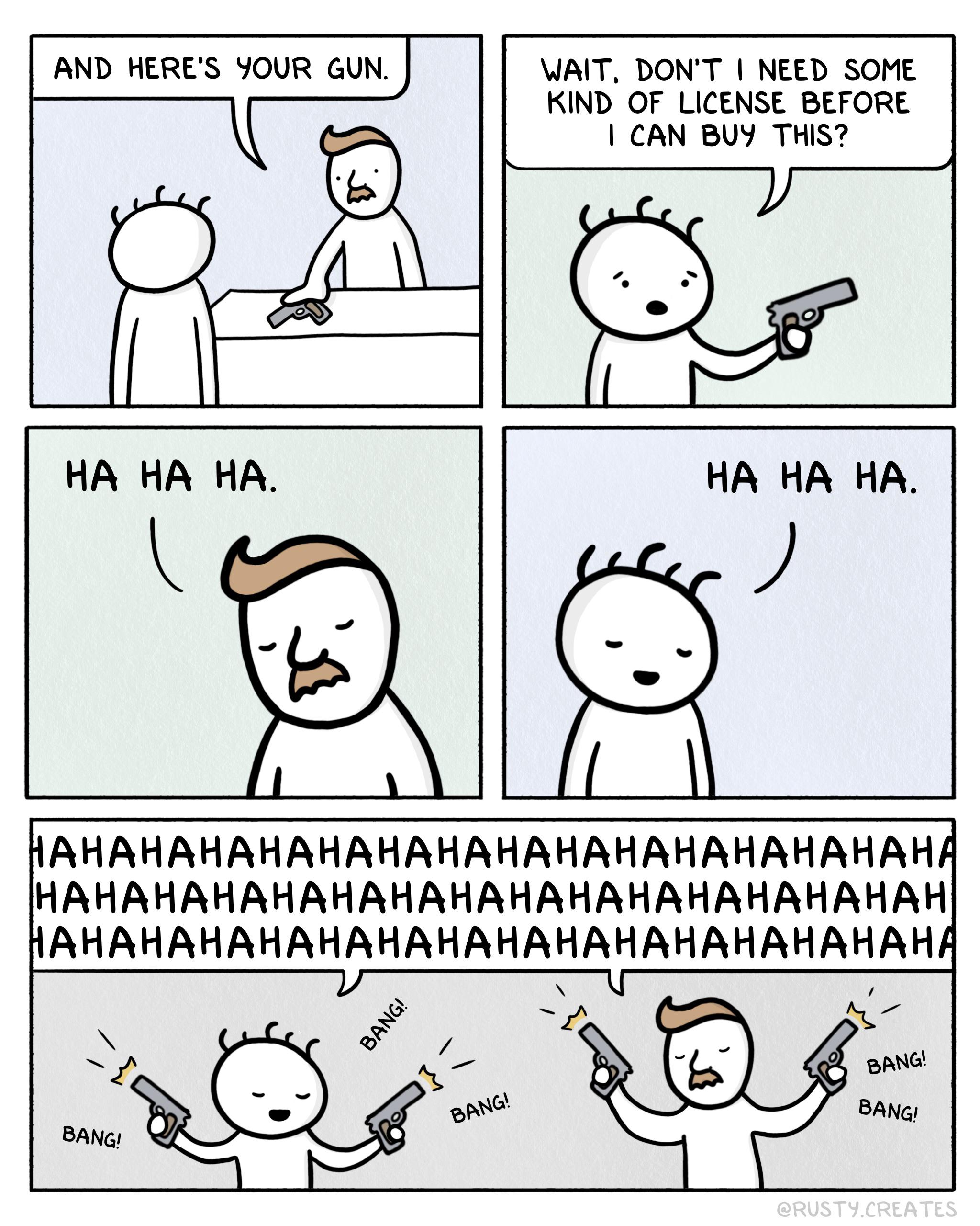 foyuka@sh.itjust.works to Comic Strips@lemmy.world · 21 hours agoPumped Up Kickssh.itjust.worksimagemessage-square54fedilinkarrow-up1633