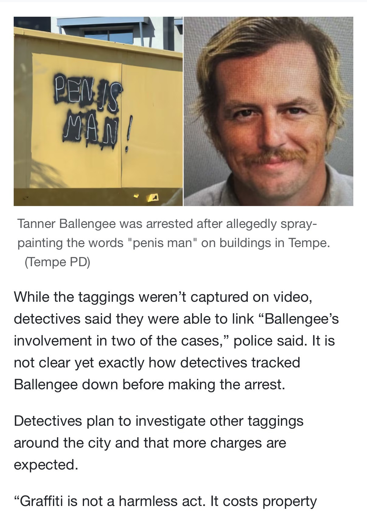 arrow-up11imageTempe Police arrest man suspected of vandalizing "Penis Man" on buildingsplus-squarelemmy.todaypostcapitalism@lemmy.today to Funny@sh.itjust.worksEnglish · 2 months agomessage-square0fedilink