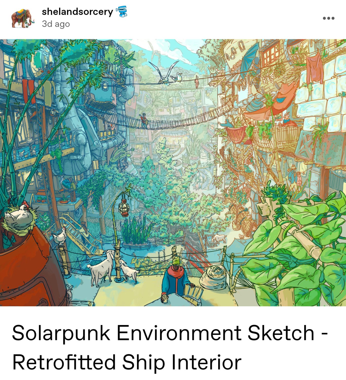 Which is to say, the more I read, the more disappointed I was in this article, because there are genuine substantive critiques of solarpunk, eg as an escapist fantasy, as impractical utopianism, and ultimately this whole long article was just an argument about whether we should call solarpunk punk.